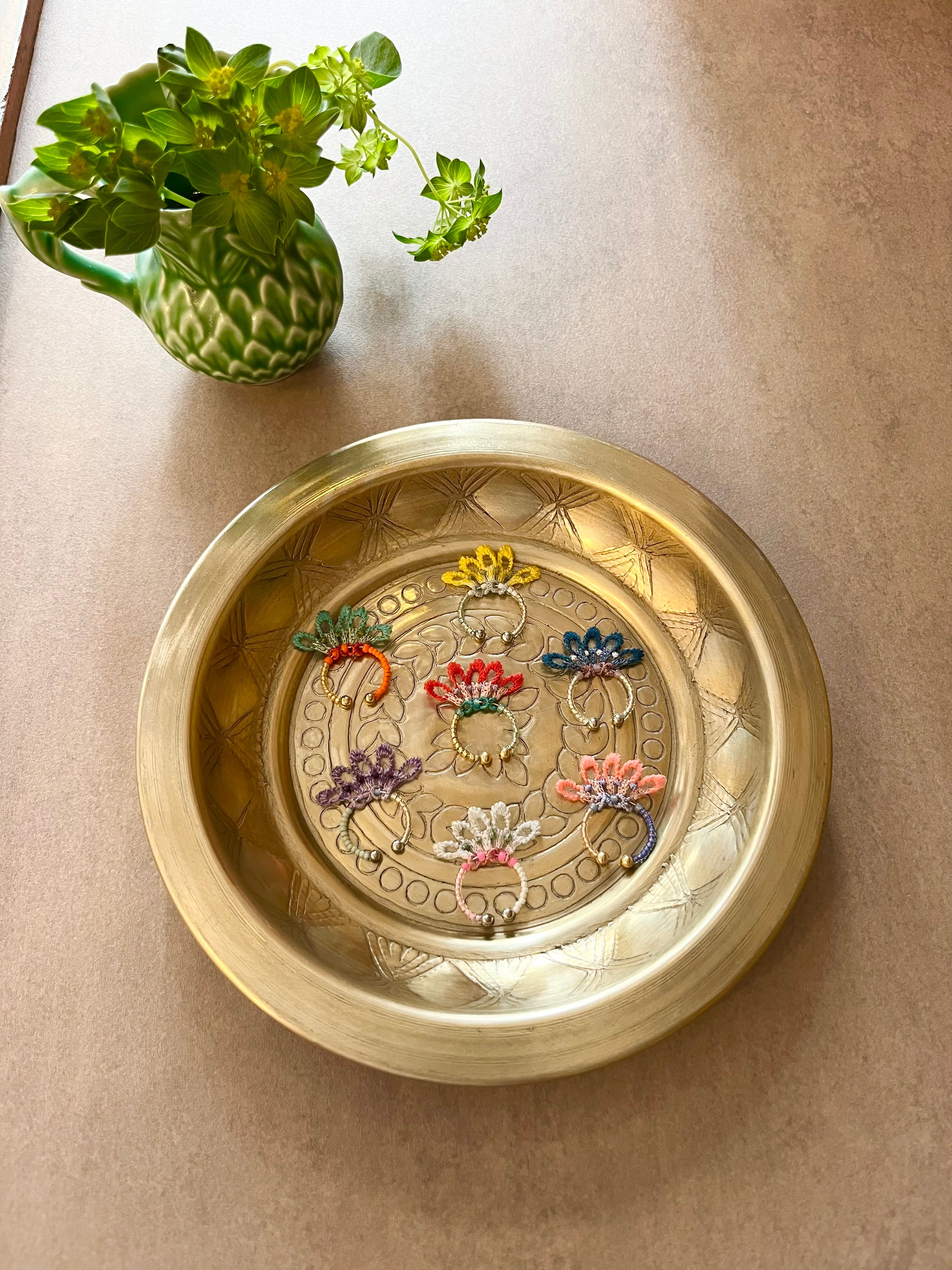 マテリアル: レーヨン糸、ビーズ